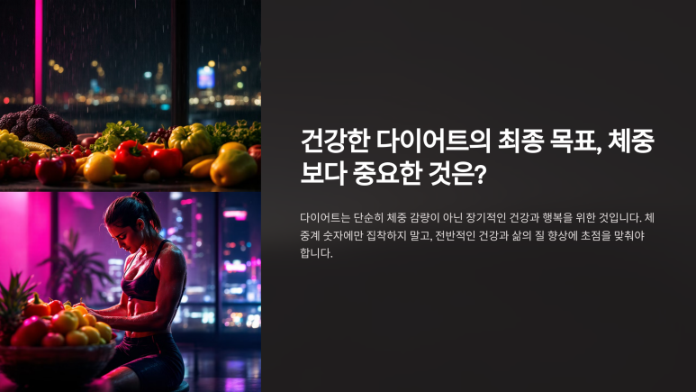 우리가 다이어트를 하는 궁극적인 이유를 곰곰이 생각해보면, 단지 ‘몸무게’를 줄이기 위함이 아니라 ‘건강하고 행복한 삶’을 위한 선택일 것입니다. 그렇다면 건강한 다이어트의 최종 목표, 체중보다 중요한 것은? 바로 내 몸과 마음이 균형을 이룬 상태, 그리고 스스로를 돌보는 습관 그 자체일 텐데요.