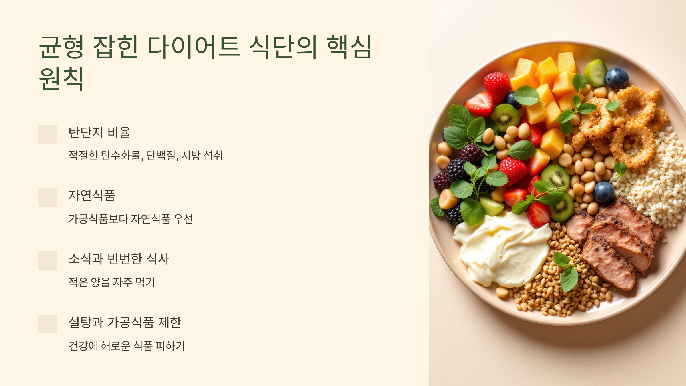 📌 균형 잡힌 다이어트 식단의 핵심 원칙