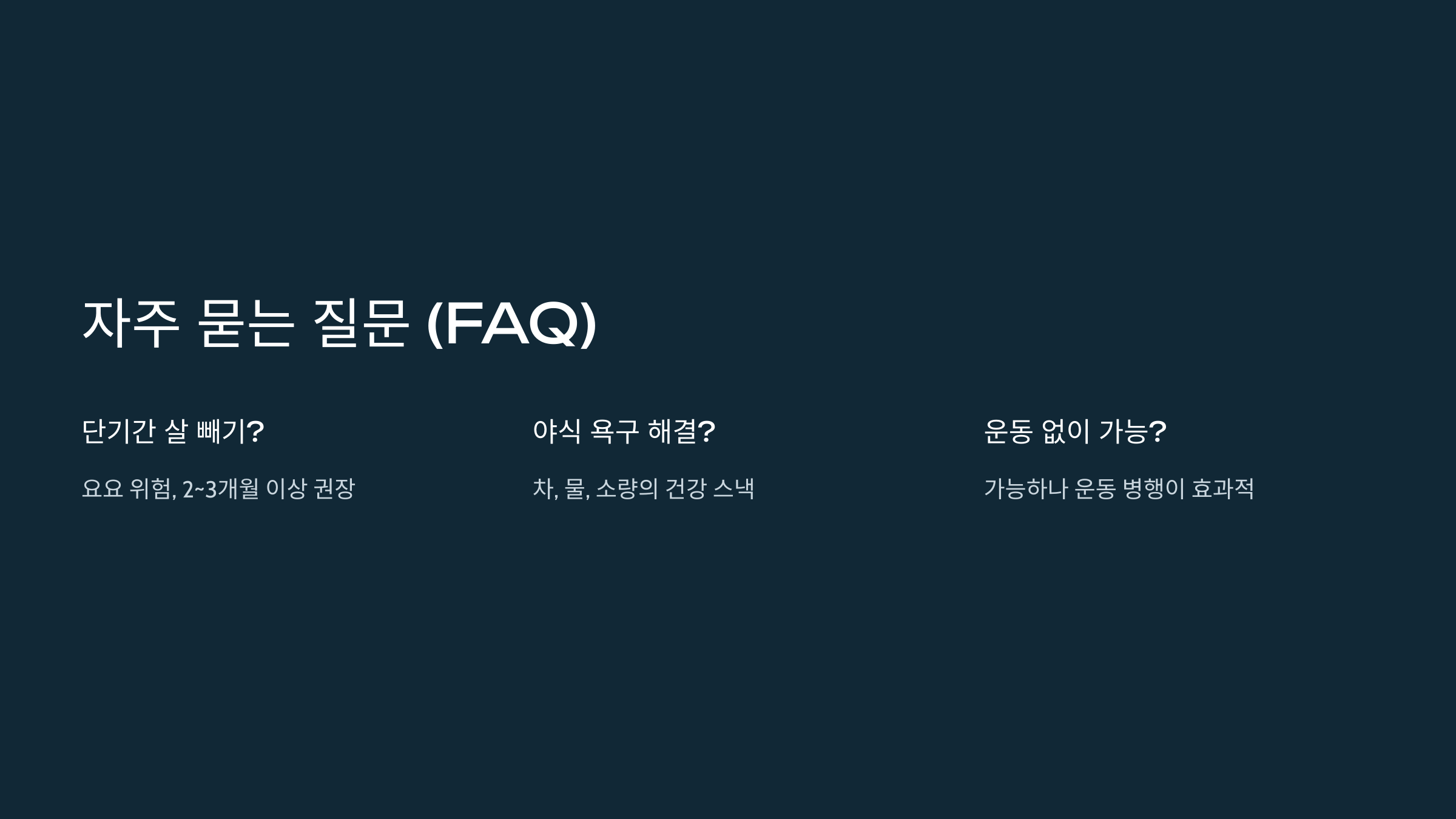 👉 단기간 감량은 요요를 유발할 가능성이 높습니다. 건강하게 감량하려면 최소 2~3개월 이상 걸려야 합니다.